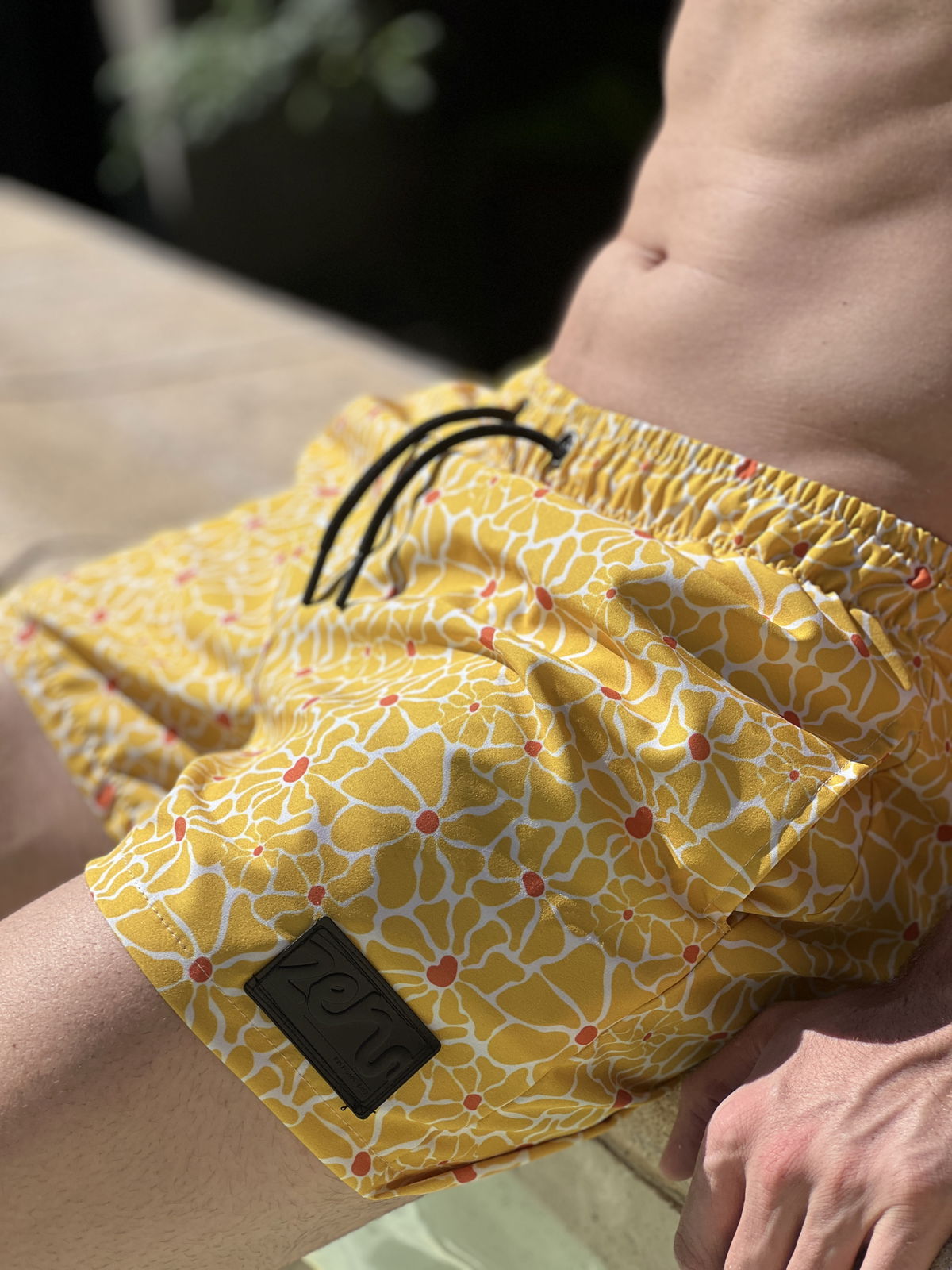 Malla de hombre en microfibra elástica, suave al tacto y con excelente calce. Diseño floral en amarillo, vibrante y fresco. Detalle de etiqueta frontal en plastisol que aporta personalidad. Ideal para playa, pileta y días de sol.